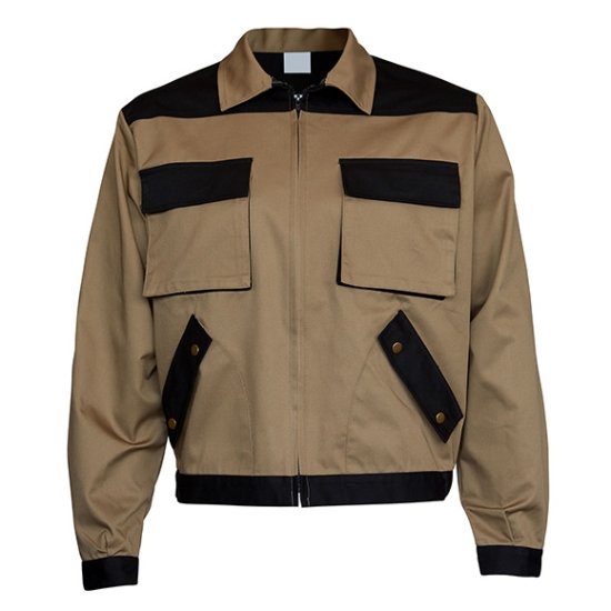Blouson à fermeture éclair centrale, 2 poches supériees de plaquée con soufflées, à rabats et velcro, Empiècement arrière,ceinture élastique sur les côtés, pinces dans le dos et poignets à pressions.