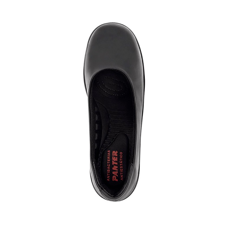 Chaussure de sécurité noire pour femme, fabriquée en cuir naturel pleine fleur, très doux au toucher. Design ergonomique adapté à l’anatomie du pied féminin. Antifatigue, recommandée pour les personnes passant leur journée debout. Idéale comme chaussure professionnelle, formelle, pour un usage urbain, au bureau ou comme uniforme.