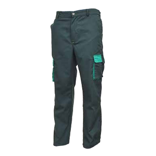 Taille semi-élastiquée, braguette fermeture à glissière, 2 poches italiennes, 1 poche arrière, 1 poche cuisse avec soufflets fermée par rabat.