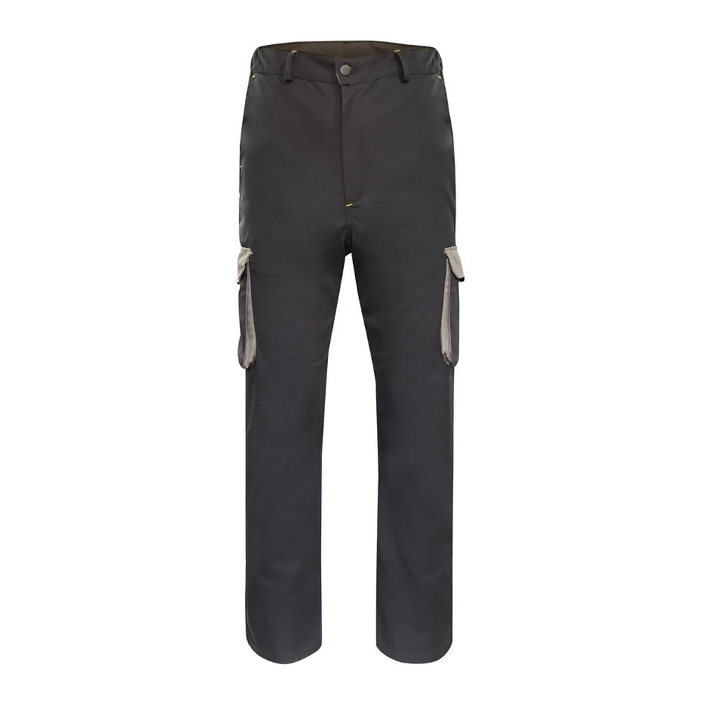 Ce pantalon à coupe ajustée présente une taille semi-élastiquée et une braguette à fermeture glissière pour un ajustement optimal. Il comprend deux poches italiennes, deux poches arrière et deux poches cuisse avec soufflets fermées par rabat, alliant fonctionnalité et confort.