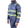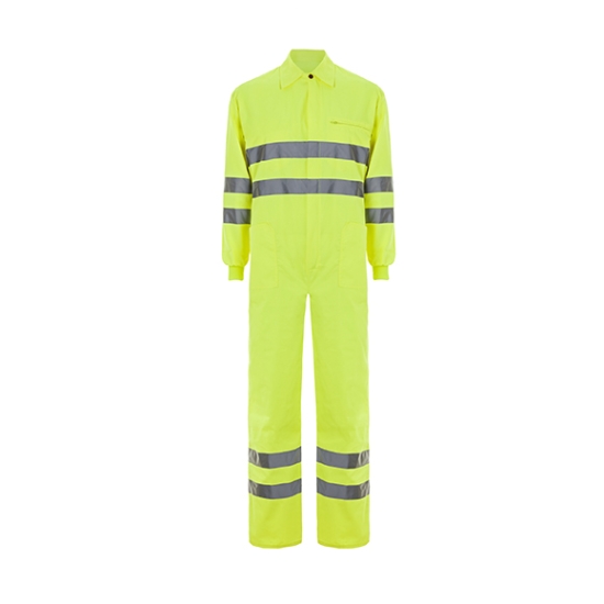 Bleu de travail unicolore fermeture centrale recta soutenue, Une poche. supérie coupée con fermeture, 2 poches inférieurees de plaquée, 1 poche arrière plaquée., dans le dos con à élastiques, poignet elástico. 2 bandes réfléchissantes en torse et manches.