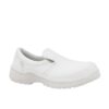 Chaussure basse blanche, type mocassin, antimicrobienne, ergonomique et à fermeture réglable pour se déchausser rapidement. Spécialement conçue pour les professionnels de l’industrie alimentaire, nettoyage, laboratoires, santé, etc.